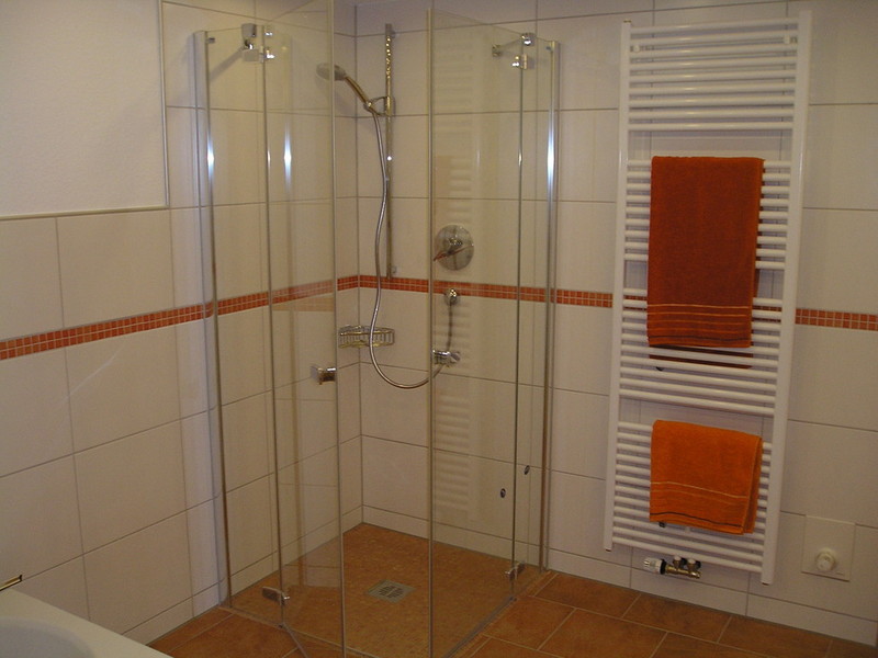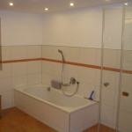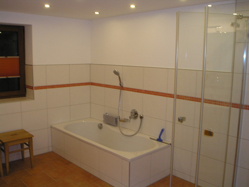 Badezimmer mit Badewanne, Dusche und WC